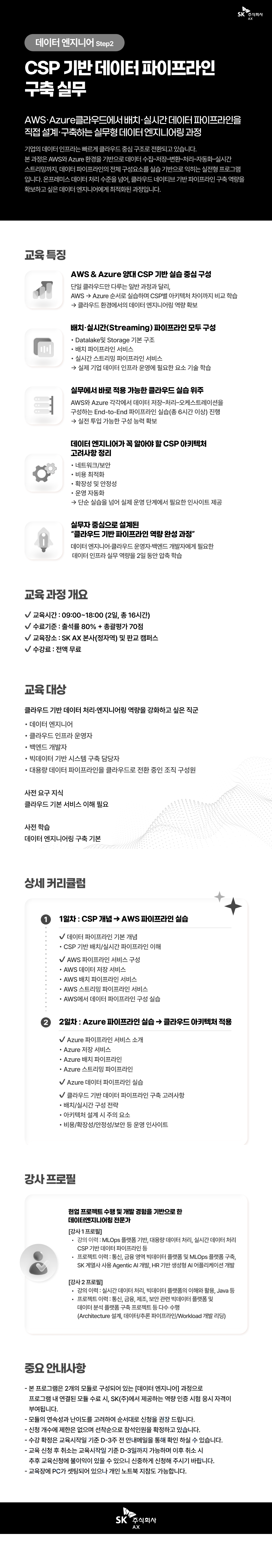 CSP 기반 데이터 파이프라인 구축 실무 과정정보